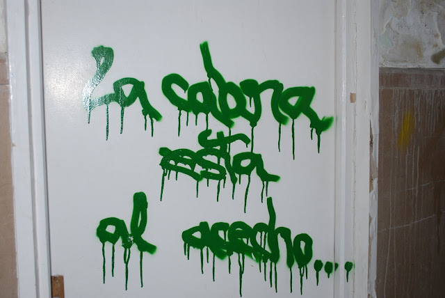 Continuamos el ascenso, planta 2ª. Llegamos a un quirófano y quedamos fascinados por la lámpara del mismo. En el momento en el que nos disponemos a tomar una fotografía de este elemento, recibimos el segundo gran susto de la mañana. Sin ningún género de duda, por apenas dos segundos y con total nitidez, escuchamos el sonido inconfundible de un aparato de reanimación cardiaca (electro-fibrilador). nos quedamos al borde del shock y nos cuesta encontrar una posible explicación "racional" para lo que acabamos de escuchar... Hacemos acopio de fuerzas y nos dirigimos a la “fatídica” planta 4ª, aquella en la que en los artículos de internet referían mayor número de fenómenos presuntamente paranormales. Sin embargo y curiosamente, resulto ser la más plácida de todas las plantas del hospital. Nada que reseñar, salvo que se había convertido en un verdadero “museo del grafiti”
